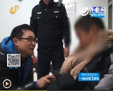 民警劝说小伙子,“给你找点东西吃”,但小伙子不愿离开。其实,小伙子从下午开始就一直蹲在山东电视台门口,害怕小伙子被冻坏了,有人拨打110报警。
